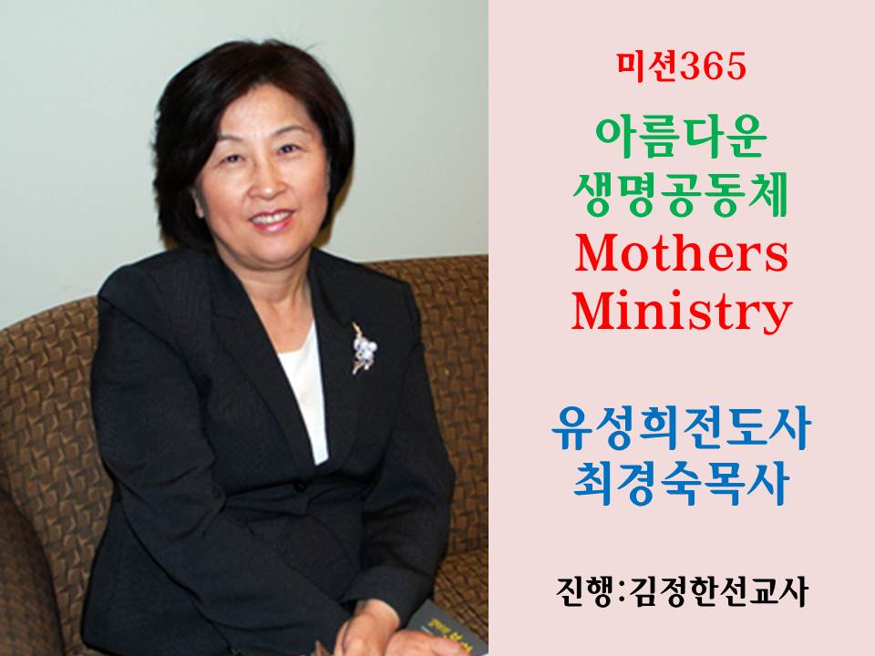 ‘하나님께서 어머니들에게 원하시는 것은 특별한 능력이 아니라 그냥 그 자리에 있는 것, 바로 ‘신실함’ 입니다. 어머니들이 특별히 여김을 받는 것은 바로 하나님 당신의 자녀를 우리에게 맡기셨기 때문이죠. 그래서 우리가 울 때 하나님께서도 울고 계세요. 이런 여성들이 ‘어머니’라는 이름으로 함께 하면 못할 것이 없습니다. 어머니들이 특히 이민사회에서 많이 눌려 있고 상처 때문에 갇혀 있습니다. 그리고 그것이 뭔지도 모르면서 아이들에게도 동일한 상처를 주고 있어요. 어머니들이 함께 기도하고 치유 받아 하나님의 딸로 자신의 정체성을 찾고, 가정을 새롭게 하면 교회도 자연스럽게 변화될 것입니다.’