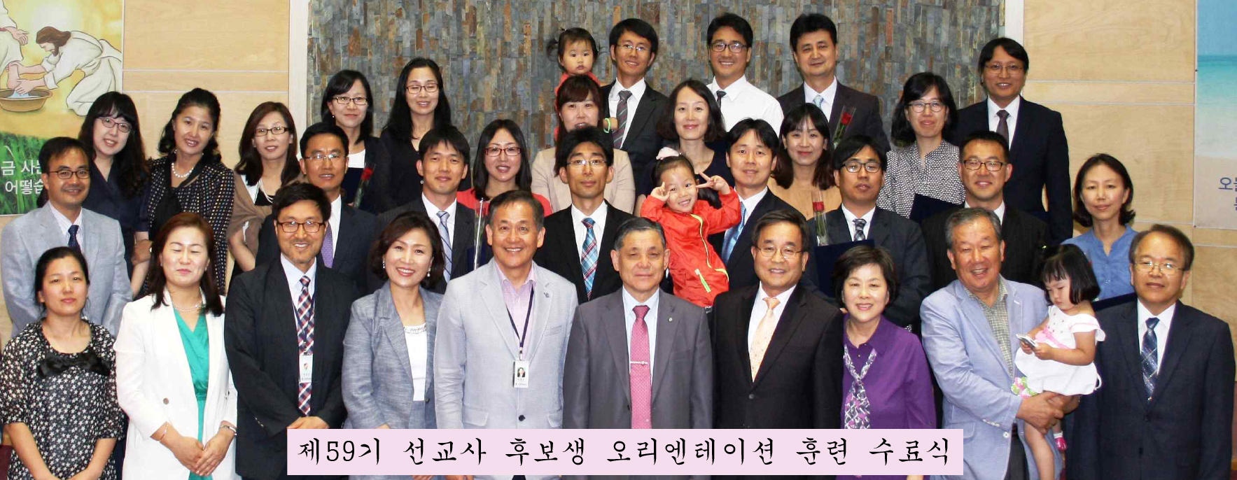 지난 3월 2일 시작했던 제59기 선교사후보 오리엔테이션 훈련이 6월 5일에 수료식을 했습니다. 월요일부터 금요일까지 새벽 기도회부터 시작하여 밤 9시까지 계속된 훈련은 선교사 후보 가족들에게는 정말로 고된 시간이었습니다. 그러나 중도 탈락 없이 모두 훈련을 잘 마쳤습니다. 훈련생들도 고생이 많았지만 훈련을 담당하는 저희들도 힘들기는 마찬가지 엇습니다. 그러나 마칠 때쯤 되니 숙달이 되고 정이 들어서 모두 한 달 쯤 더 해도 좋겠다고 했습니다. 8월 11일 모이는이사회에서 이 훈련생들이 최종 면접을 통과하면 교단 선교사로 허입이 되고 가을에 모금하여 현지로 파송을 받게 됩니다. 이들이 좋은 선교사가 되도록 기도해 주시기바랍니다.