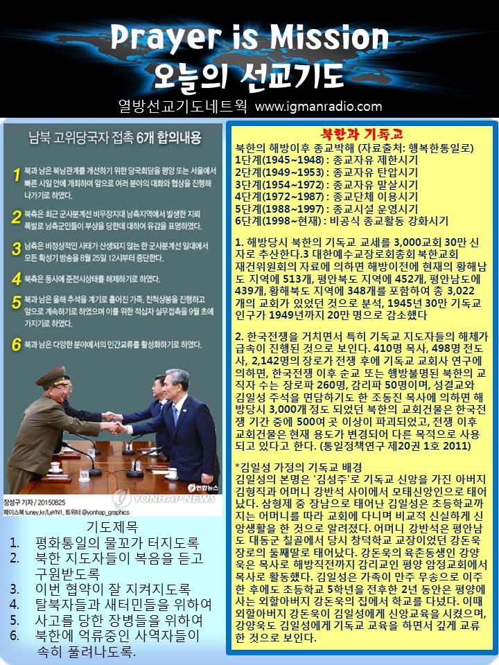 Home 선교정보 국가를 위한 기도 선교정보국가를 위한 기도 Prayer is Mission 오늘의 선교기도 2015년 8월 25일 By Son4u - Aug 24, 2015 323 0 SHARE Facebook Twitter