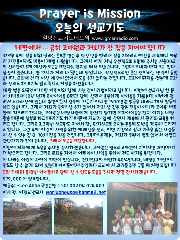 Home 선교정보 국가를 위한 기도 선교정보국가를 위한 기도 Prayer is Mission 오늘의 선교기도 2015.9.21. By Son4u - Sep 21, 2015 345 0 SHARE Facebook Twitter