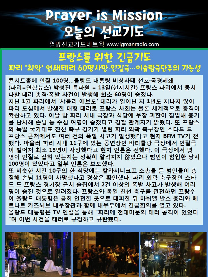 Home 선교정보 국가를 위한 기도 선교정보국가를 위한 기도 Prayer is Mission 오늘의 선교기도 2015.11.13 By Son4u - Nov 14, 2015 471 0 SHARE Facebook Twitter