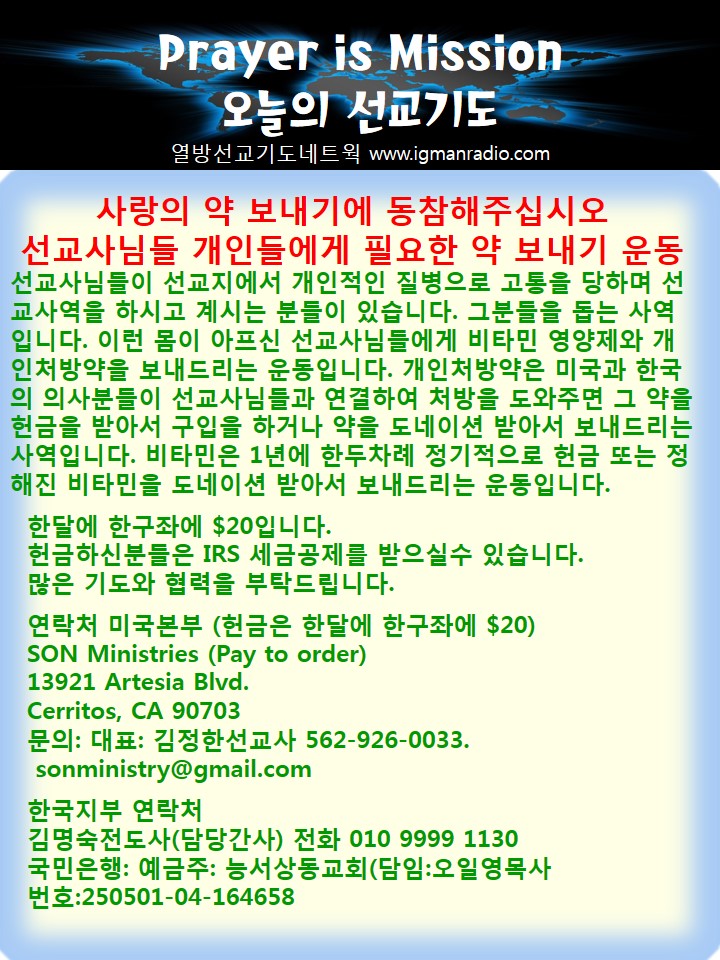 Home 선교정보 국가를 위한 기도 선교정보국가를 위한 기도 Prayer is Mission 오늘의 선교기도 2015.12.21. By Son4u - Dec 22, 2015 333 0 SHARE Facebook Twitter