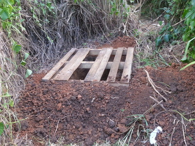 구덩이를 파고 그 위에 빠지지 않도록 파랫트를 구해다가 얹어 놓았다.