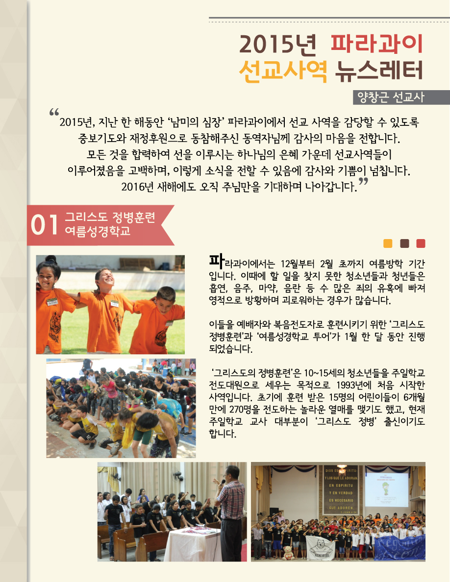 Home 선교정보자료 선교사편지 선교정보자료선교사편지 감사합니다! 축복합니다” 2015년 파라과이 선교사역 뉴스레터 By Son4u - Jan 15, 2016 715 0 SHARE Facebook Twitter