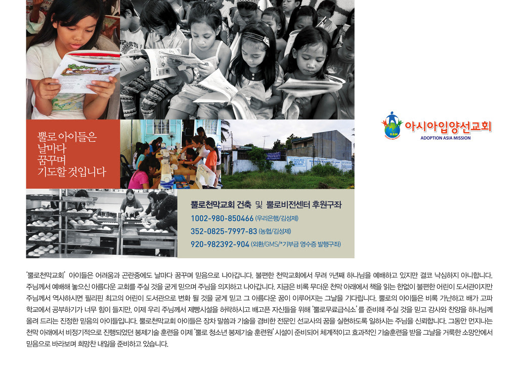 2.’영적입양’ 후원자와 개인 후원자에게는 1부씩 무료로 발송해 드립니다.