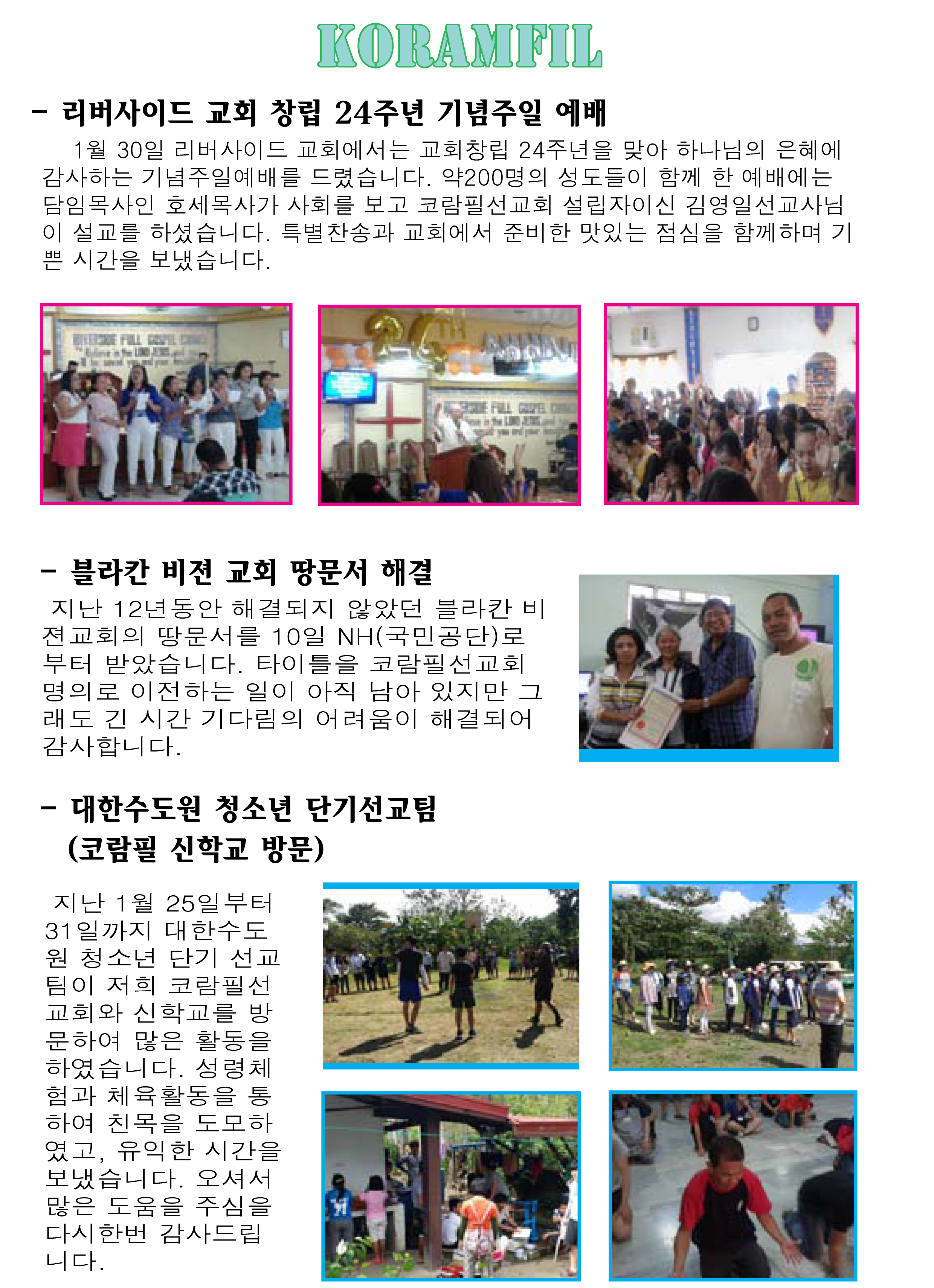 Home 선교정보자료 선교사편지 선교정보자료선교사편지 김영일선교사 코람필선교회 2월 소식 By Son4u - Feb 26, 2016 1227 0 SHARE Facebook Twitter