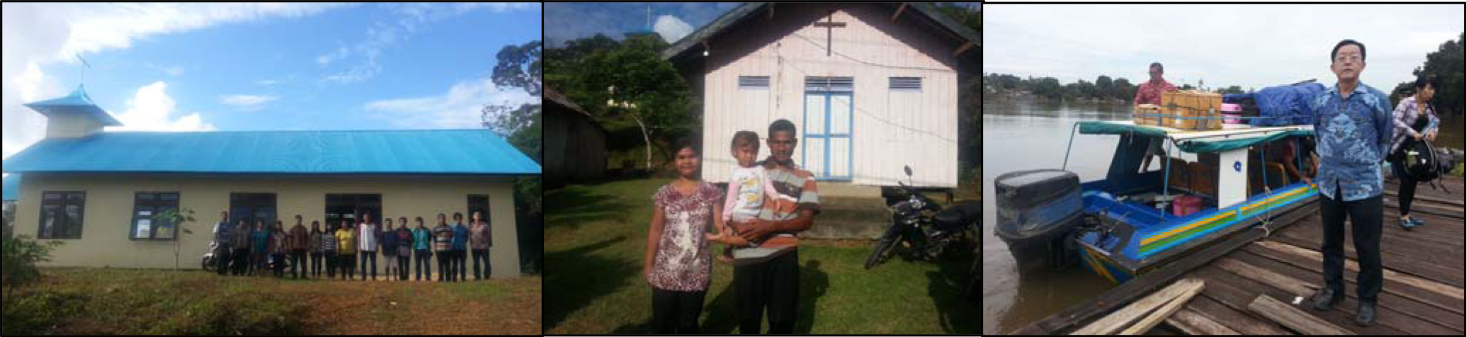 (깔람교회 준공식을 마치고) (깔람교회 리무스 전도사 가족) (강을 따라 배를 타고 정글선교여행하며)