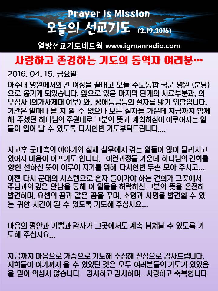 Home 선교정보 국가를 위한 기도 선교정보국가를 위한 기도 오늘의 선교기도(2016.4.15) By Son4u - Apr 15, 2016 2313 0 SHARE Facebook Twitter