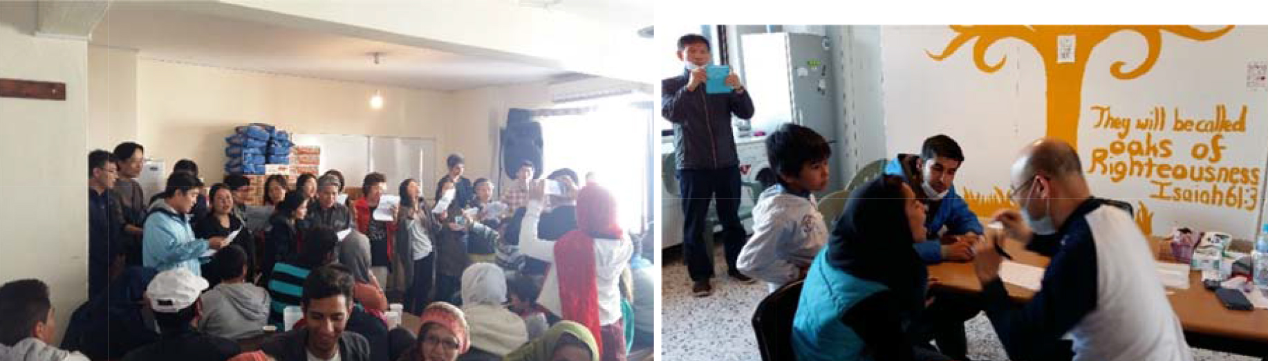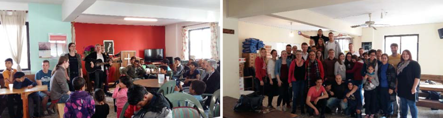 2016년 3월부터 5월 10일 까지 4 단기 선교 팀들이(독일 HERZWERK 팀, 아부다비 한인교회 팀,나섬 공동체 팀,뉴 비전 교회 팀, 미국에 거주하는 이란인 샤합 형제 ) 사마리아 센터에 오시어 잔치 사역 ,의료사역,영어 교실 ,센터 수리,음향장비 설치 ,성경학교,어린이 사역,구호 사역을 감당 해주셨습니다. 특별히 3&4월 팀원들 가운데 2명의 이란인 사역 자들이 있어 비록 짧은 기간이지만 장기성경 학교(훈련원)를 바라다 보는 페르시아 언어로 미니 성경 학교 와 SKYPE(샤합형제: 미국 거주)를 통한 성경 교실을 열어 열방교회 형제들 과 아가피 교회 형제들에게 믿음의 훈련을 갖게 되어 난민들을 복음의 일꾼으로 훈련시키는 훈련원에 대한 청사진을 좀더 구체적으로 갖게 되었습니다.