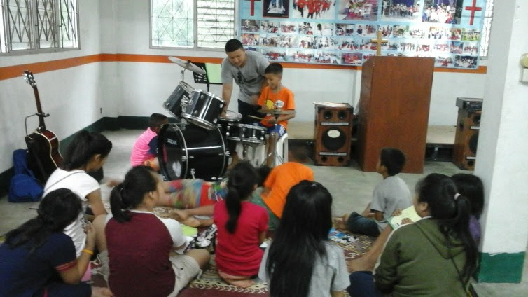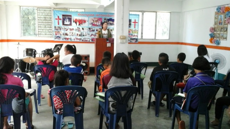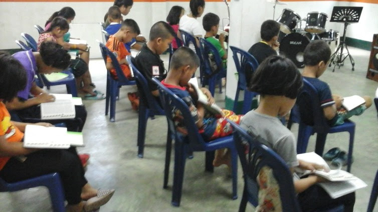 태국어, 산수, 영어, 찬양을 배우고 오후에 점심 먹고 한국어 공부와 악기 공부를 합니다.