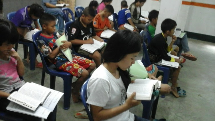 임마누엘청소년센타에서 태국청소년들에게 토요일 기도하고 말씀 보고 찬송으로 시작하여