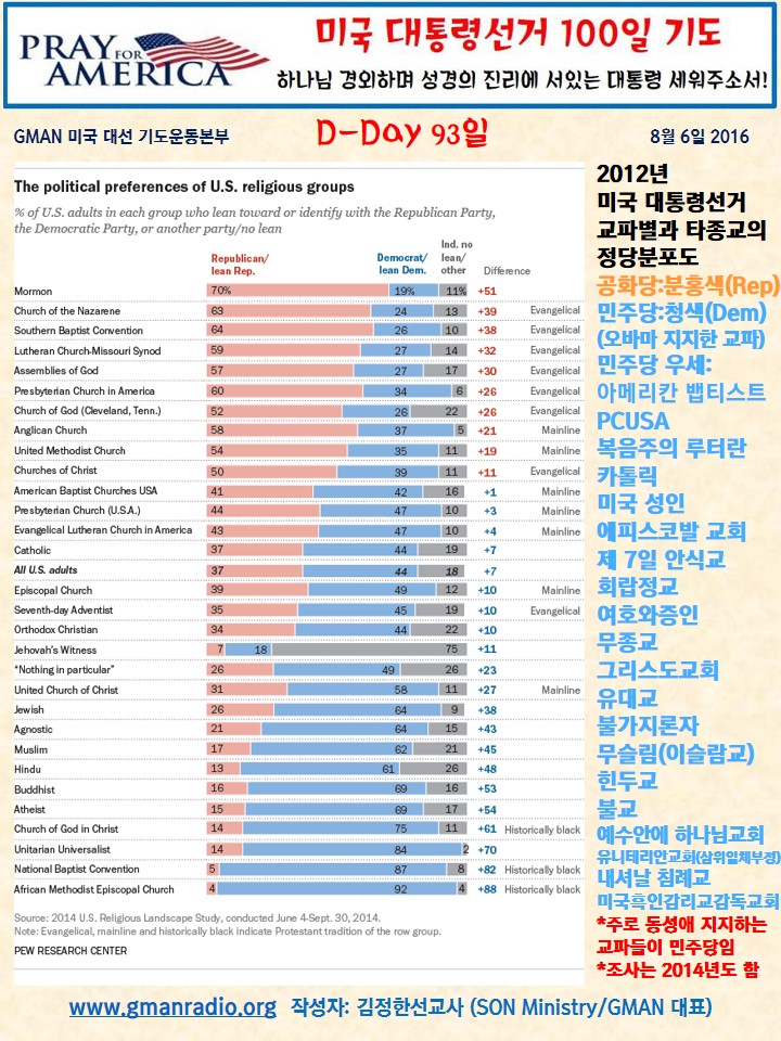 Home 선교정보자료 미국대선 100일 기도운동 선교정보자료미국대선 100일 기도운동 D-Day 93 미국대통령선거를 위한 기도 By Son4u - Aug 6, 2016 1494 0 SHARE Facebook Twitter