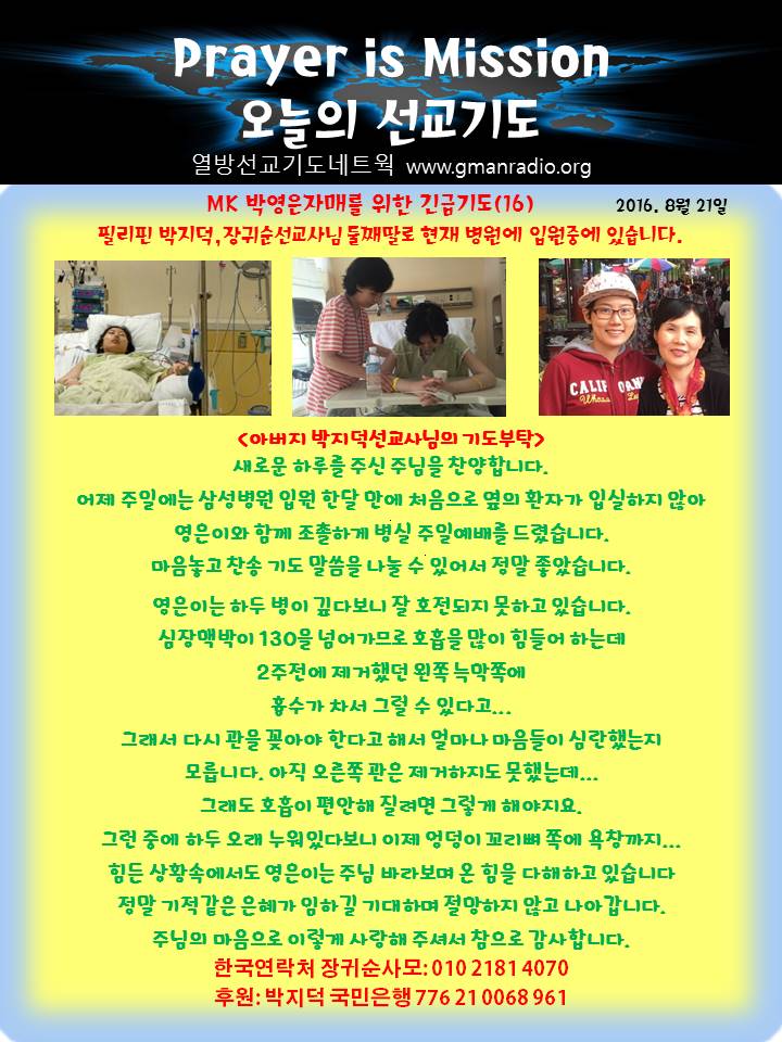 Home 선교정보 국가를 위한 기도 선교정보국가를 위한 기도 MK 박영은자매를 위한 긴급기도(16) 2016. 8월 21일 By Son4u - Aug 22, 2016 1675 0 SHARE Facebook Twitter