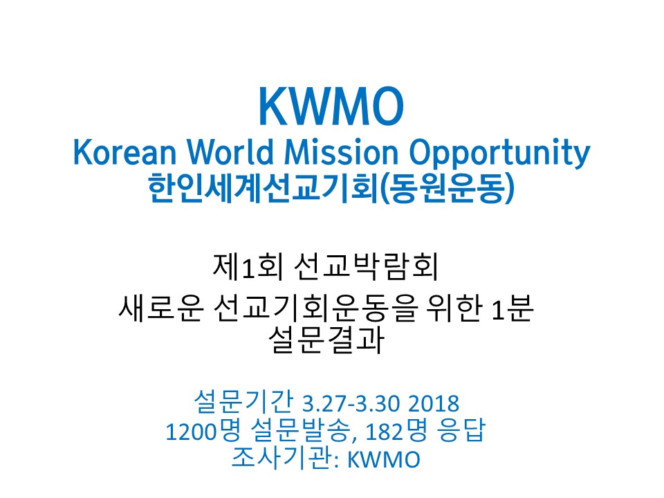 Home 선교방송 미션 365 선교방송미션 365 선교동원을 위한 제1회 선교박람회, 새로운 선교기회운동(KWMO)을 위한 1분 설문결과 By Son4u - Mar 31, 2018 1276 0 SHARE Facebook Twitter