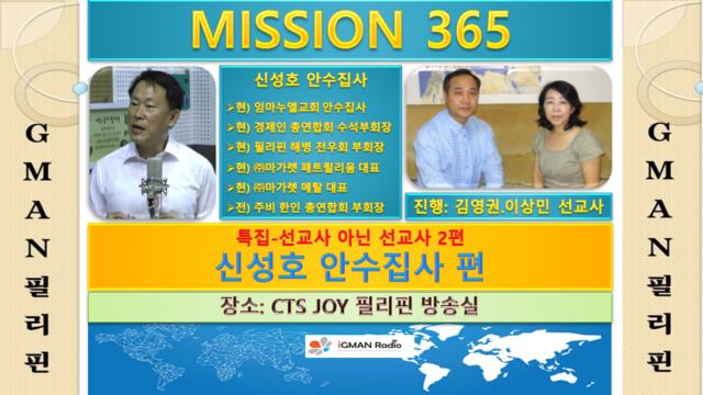Home GMAN 해외방송 GMAN 필리핀 GMAN 해외방송GMAN 필리핀 GMAN 필리핀_미션365_특집_선교사 아닌 선교사2_신성호 안수집사 편 By gm1 gm1 - Dec 4, 2018 2397 0 SHARE Facebook Twitter 어디선가 필리핀 교민들에게 무슨일이 생기면, 어디 든지 달려간다 신반장~ 필리핀 교민들의 재난, 사건, 사고 현장이면 어디든지 달려가서 해결하기 위해 노력하는 필리핀 교민들의 홍반장, 신성호 안수집사를 만나서 그의 삶과 사역, 그리고 신앙과 인생 철학을 들어본다. 2018.11.21(수) CTS JOY 필리핀 방송실