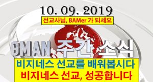 GMAN 주간소식 10/09/2019 “선교사님, BAMer 가 되세요”